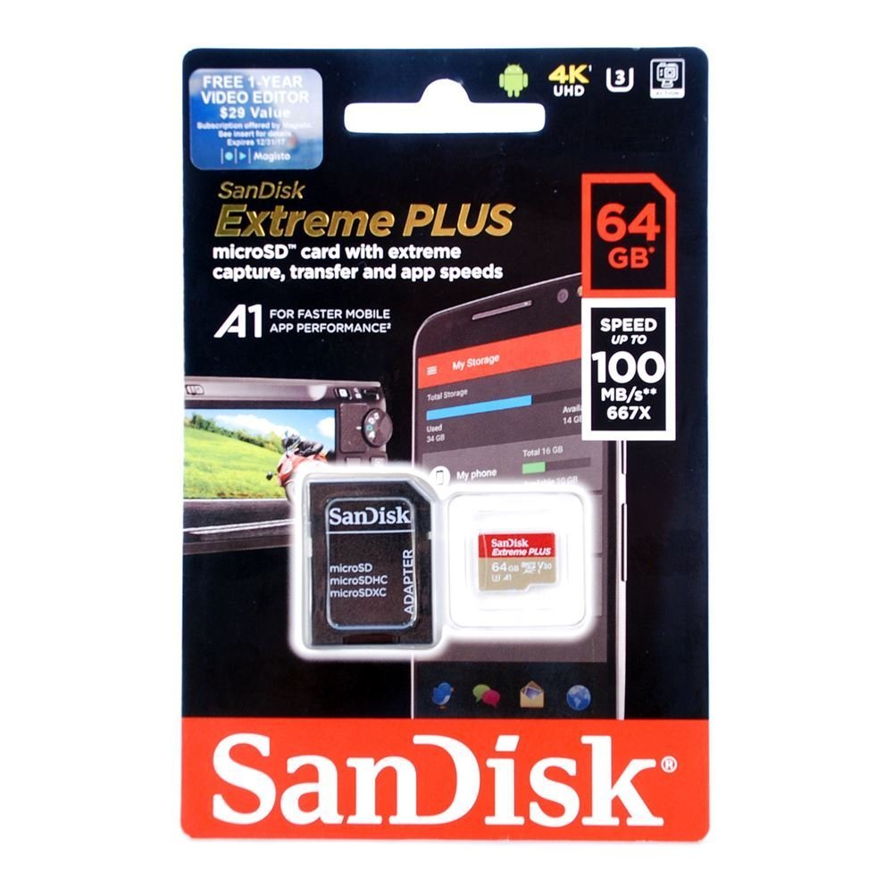 SanDisk Extreme 64GB 100/mbps microSDXC Memory Card is one of the best selling and our top-line products which we offer at the best price all over Pakistan with a nationwide fast delivery service. So don’t wait and get rushed to buy this product now at radiotvcentre.pk. Just place your order or call us now before it gets out of stock.